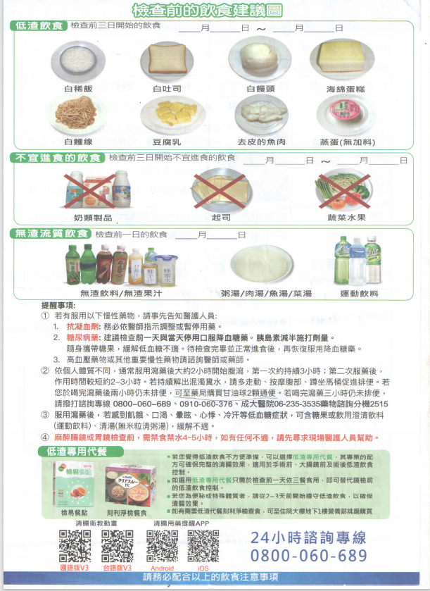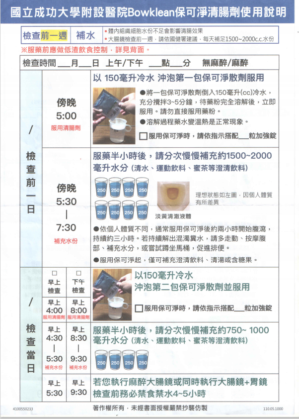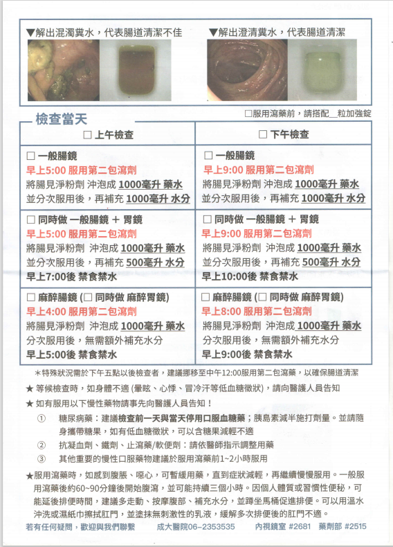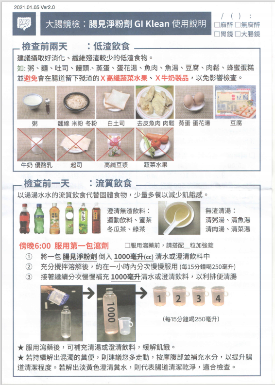 健檢中心大腸鏡檢查前飲食及清償劑使用說明